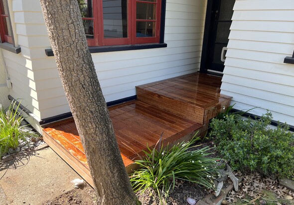Here we transformed this front entry from original to a more inviting access to the front door .Enhancing the feel as you enter the property